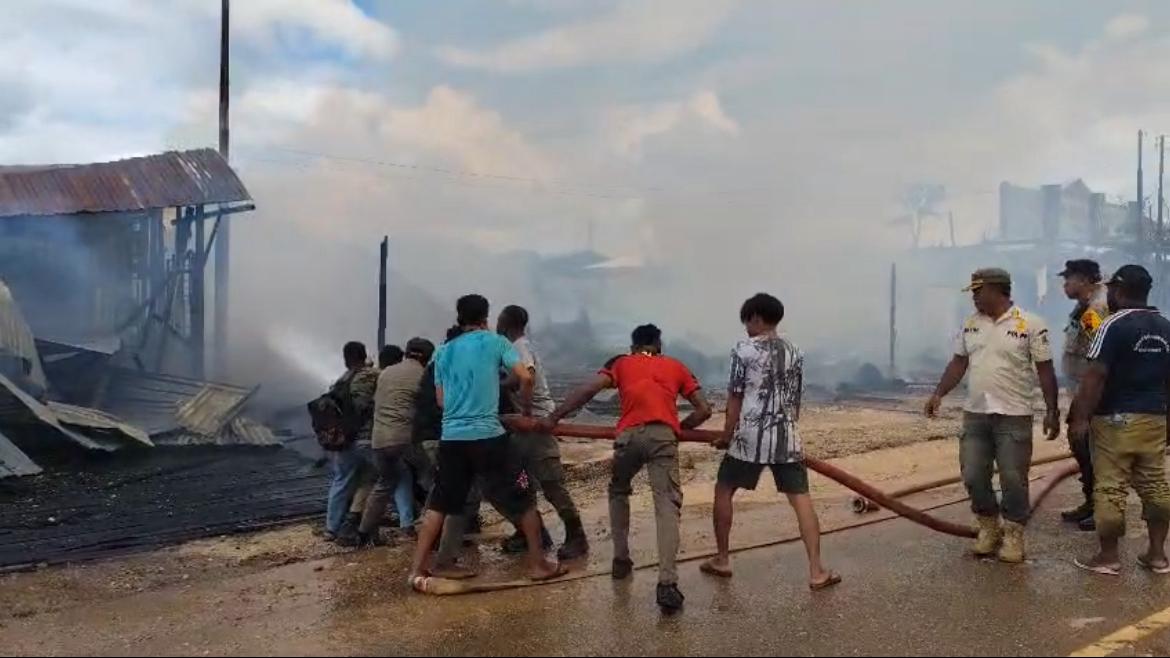 Boven Digoel, Mmcnews – Telah terjadi kebakaran hebat pada hari Rabu, 11 Juni 2025, di Km 3 arah Mindiptana, Kampung Persatuan, Distrik Mandobo, Kabupaten Boven Digoel. Kebakaran ini menghanguskan lima bangunan yang terdiri dari dua kios kelontong, satu konter handphone, satu tempat bengkel, serta satu kios yang diketahui menjual minuman keras (miras).
