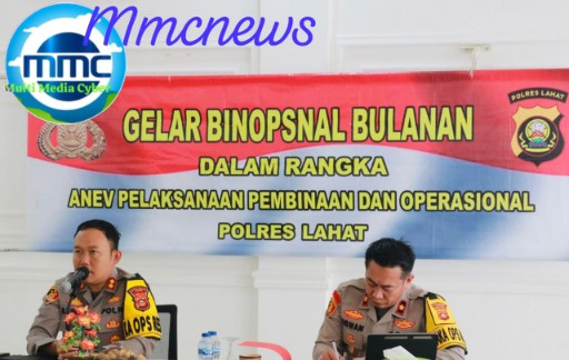 Lahat | MMC – Dalam rangka kegiatan Gelar Operasional (GO) bulanan dalam rangka Analisa dan Evaluasi (Anev) terhadap pelaksanaan tugas pembinaan dan operasional, bertempat di Aula Mapolres Lahat, di Pimpin langsung Kapolres Lahat AKBP Novi Edyanto SIK.MIK,