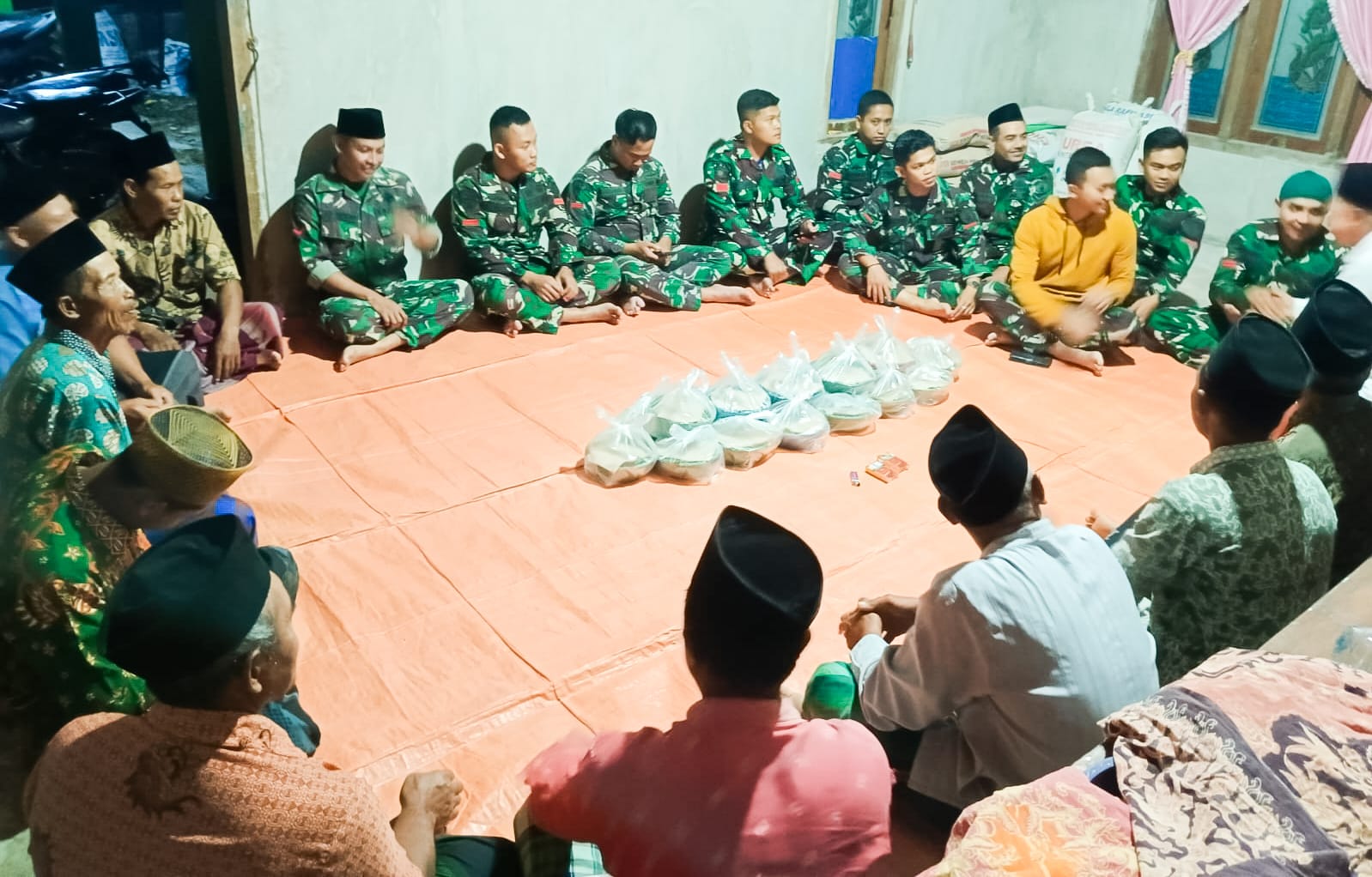 BOJONEGORO, – Sebagai wujud kedekatan dengan rakyat, personel Satuan Tugas (Satgas) TNI Manunggal Membangun Desa atau TMMD ke- 125 Kodim 0813 Bojonegoro di Desa Soko Kecamatan Temayang, rutin mengikuti kegiatan Yasinan dan Tahlil di rumah-rumah warga yang dilaksanakan sepekan sekali, tepatnya setiap hari Kamis malam.