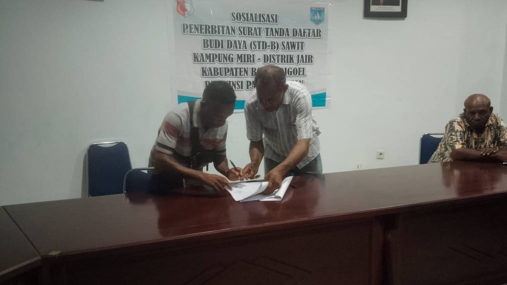 Boven Digoel, Mmcnews — Sembilan marga pemilik hak ulayat di Kampung Miri, Distrik Jair, Kabupaten Boven Digoel, menandatangani kesepakatan dengan Pemerintah Kabupaten Boven Digoel dan pihak perusahaan PT Indoagro Daya Adimulia (PT IDA) terkait rencana pembangunan perkebunan kelapa sawit di atas lahan adat.
