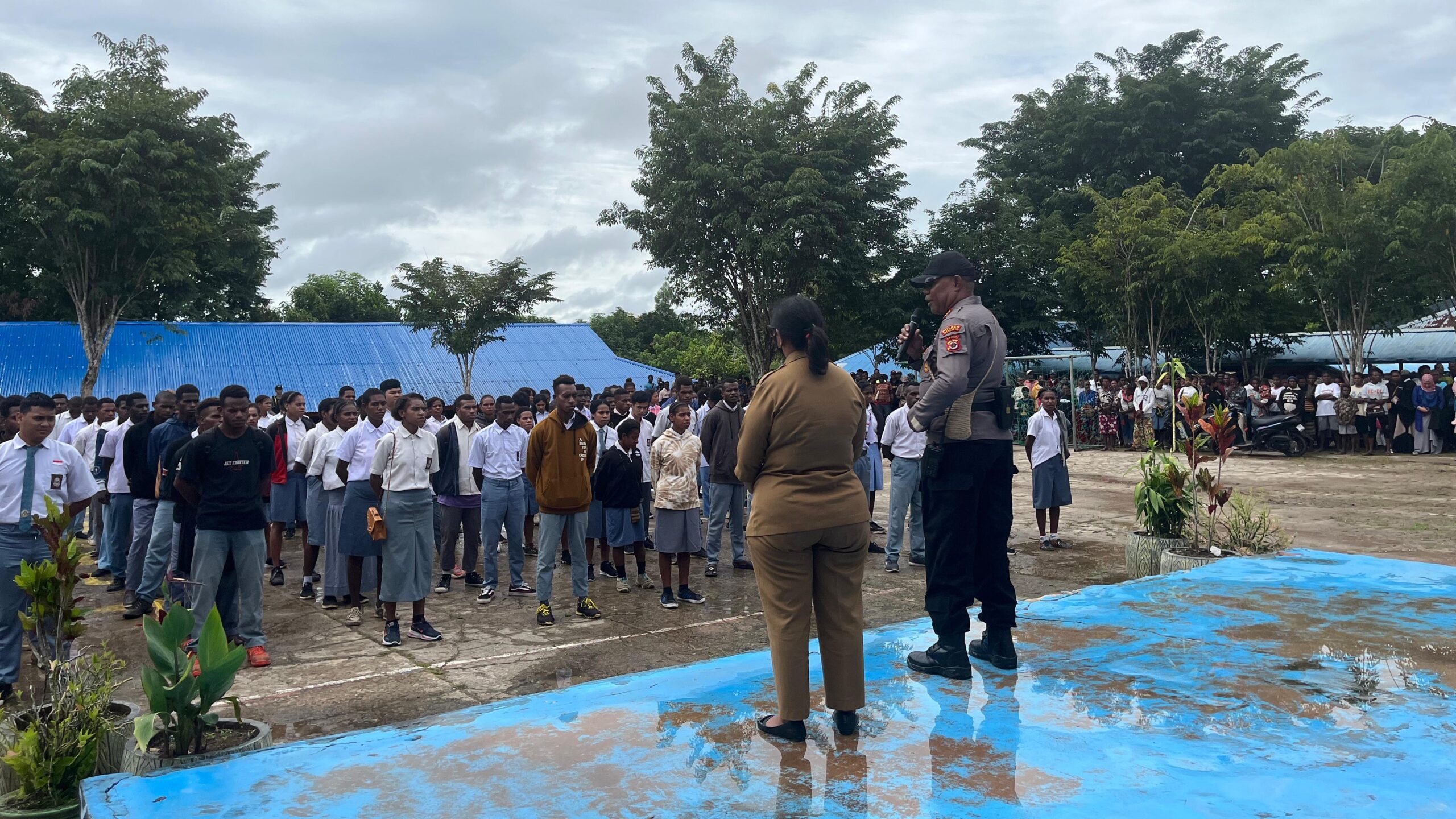 Mappi, Mmcnews – Dalam rangka menjamin stabilitas keamanan dan ketertiban masyarakat (kamtibmas) saat pengumuman hasil kelulusan, Kepolisian Resor (Polres) Mappi menerjunkan personel untuk melakukan pengamanan di SMK Negeri 1 Obaa, Distrik Obaa.