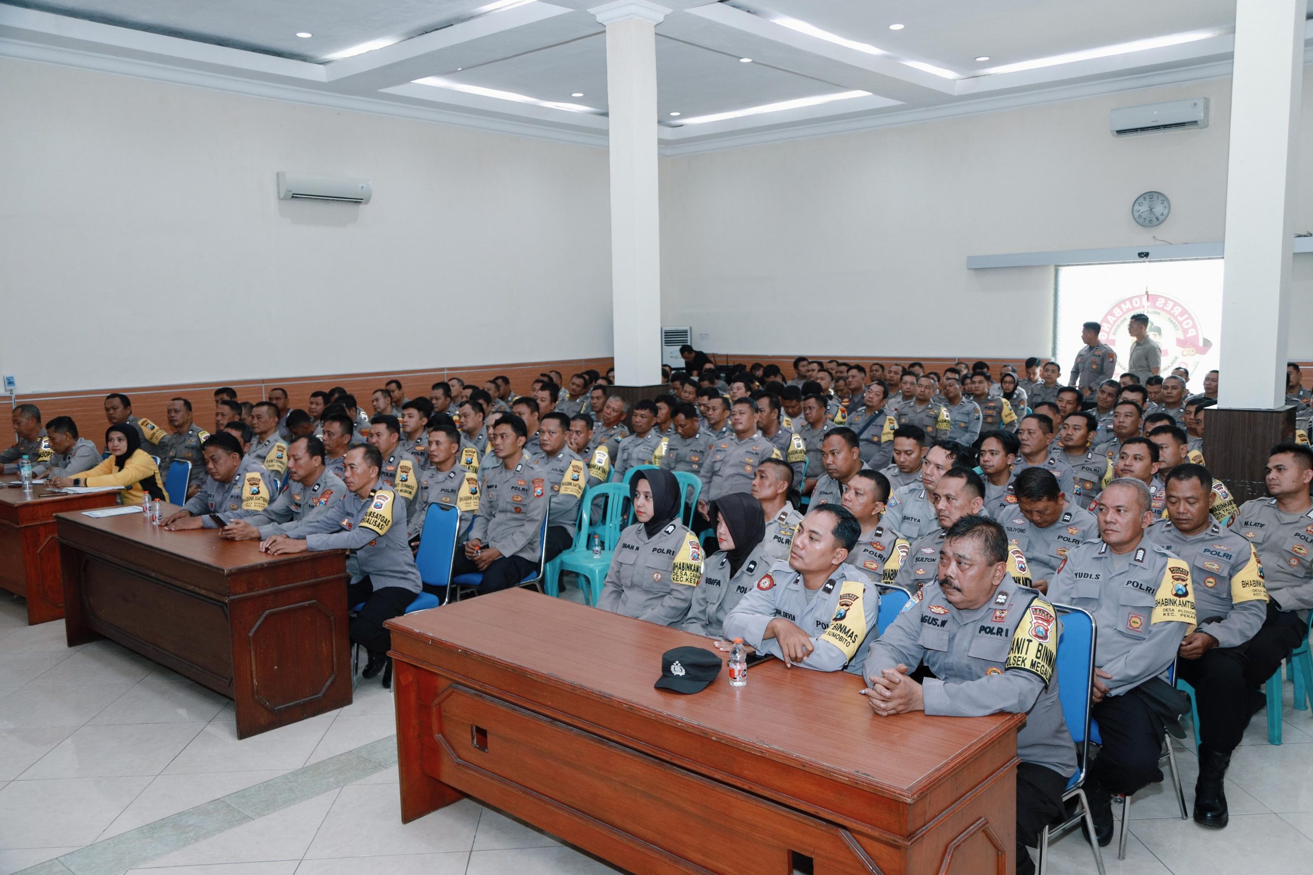 MMCNEWS.ID – Lapangan apel Polres Jombang dipenuhi Bhabinkamtibmas Polsek jajaran untuk menerima arahan dalam rangka menindaklanjuti perintah Pimpinan Polri mendukung program pemerintah terkait percepatan swasembada pangan.