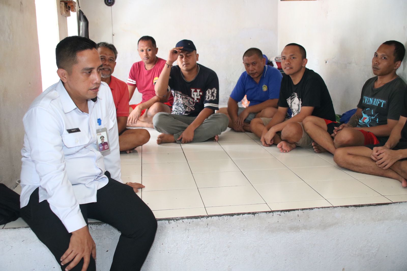 Selain menyapa warga binaan sebagai perkenalan awal sebagai Kalapas baru, Mukaffi juga menyempatkan diri duduk bersama dan berdialog bersama warga binaan.