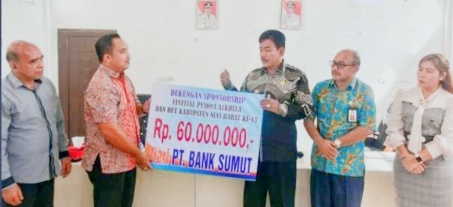 Nias Barat | Nias Barat – Untuk mendukung suskesnya pelaskanaan Kharisma Event Nusantara-Festival Pesona Aekhula yang dilaksanakan mulai tanggal 18-22 Juni 2022 di Kecamatan Sirombu Kabupaten Nias Barat, Bank Sumut Cabang Pembantu (Capem) Lahomi memberikan bantuan kepada Panitia dalam bentuk uang sebesar Rp. 60.000.000.