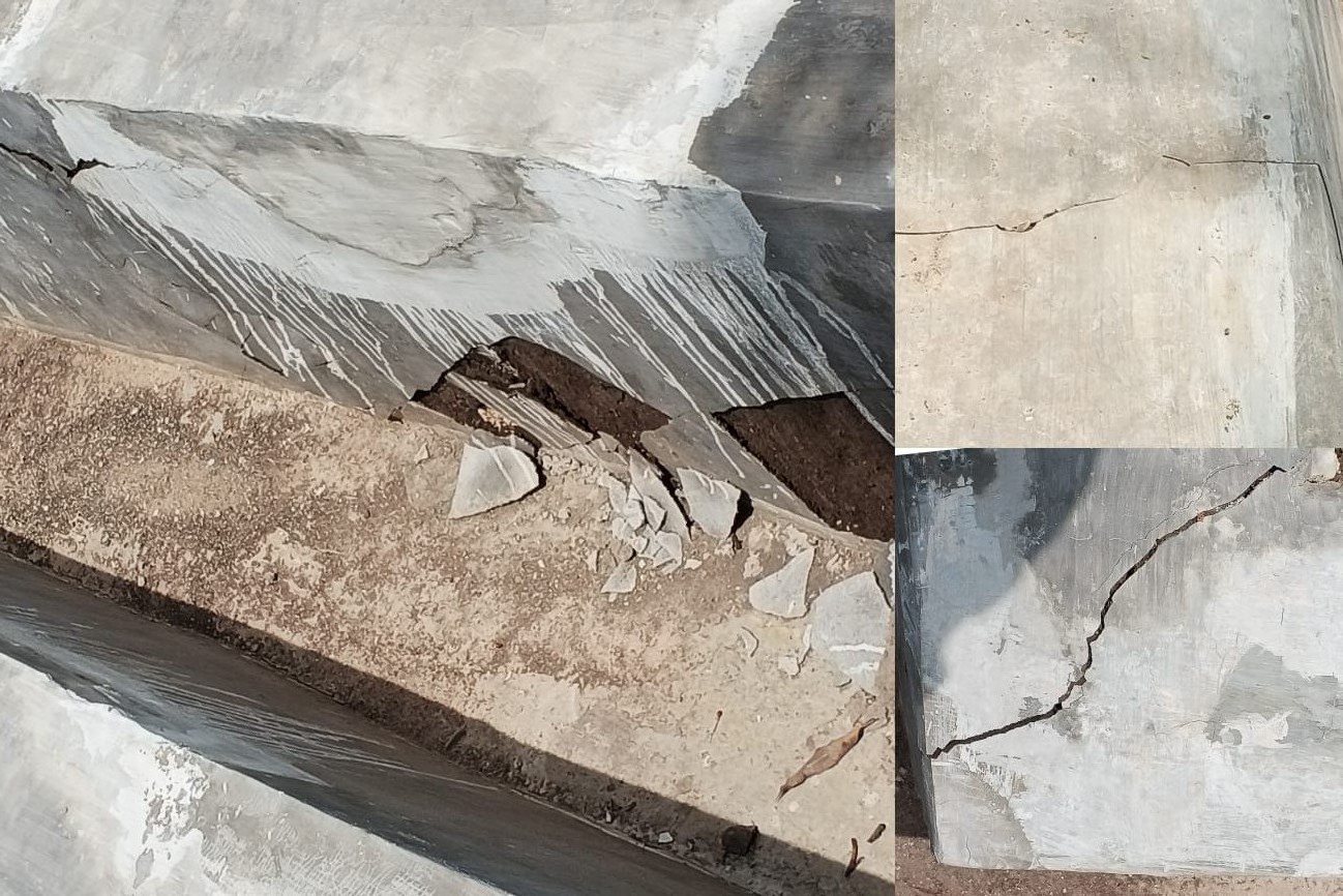 Sampang|| MMCMadura, Proyek Irigasi yang berada di desa Noreh kecamatan Sreseh Kab. Sampang baru dibangun sudah menunjukkan tanda tanda kerusakan yang sangat serius seperti keretakan serta pengelupasan pada bangunan.