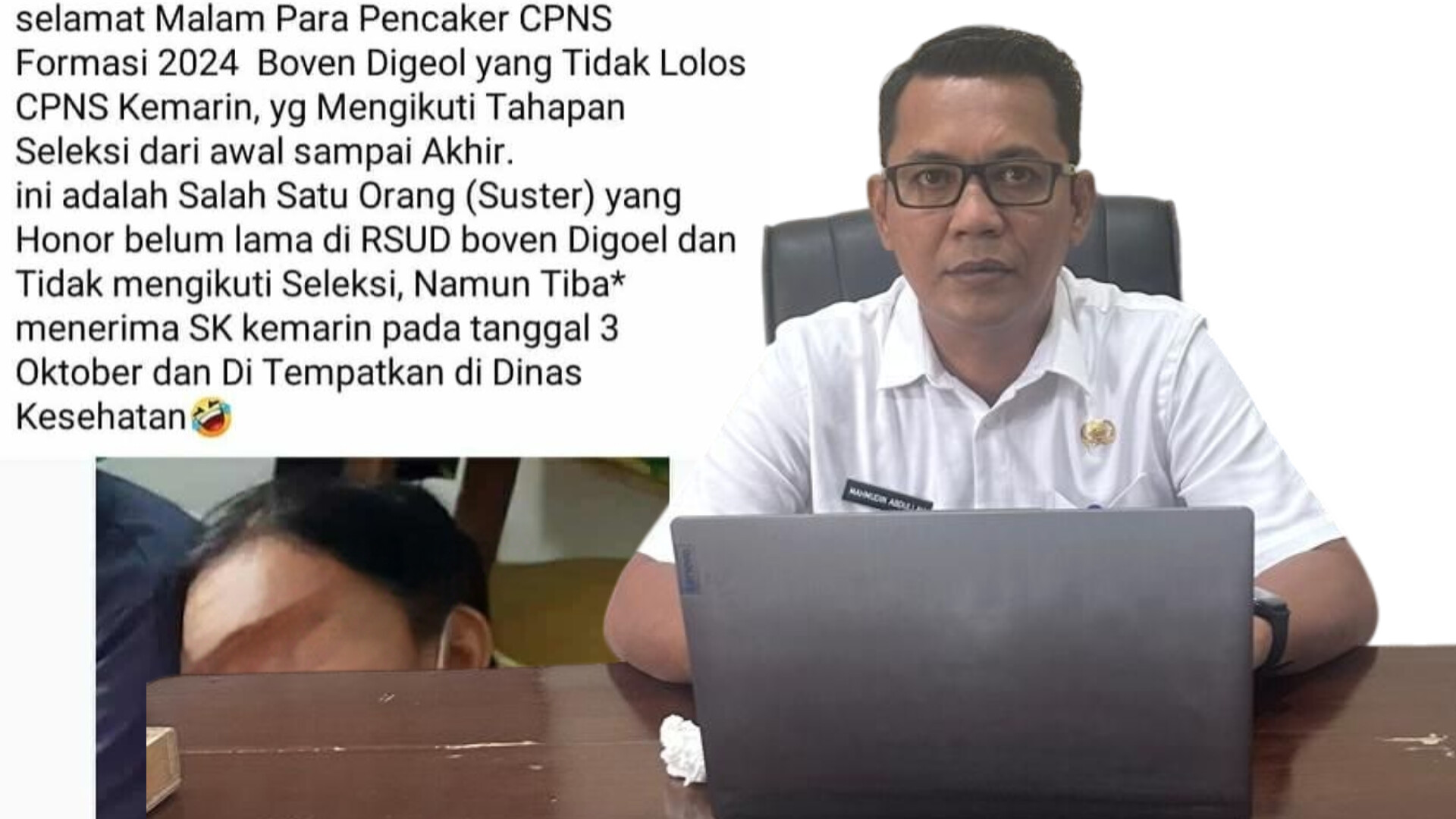 Boven Digoel, Mmcnews — Beredar informasi di media sosial yang menyebut seorang tenaga kesehatan di Kabupaten Boven Digoel menjadi CPNS tanpa mengikuti tes. Pegawai tersebut dikabarkan sebelumnya bertugas di RSUD Boven Digoel dan kini berpindah ke Dinas Kesehatan.