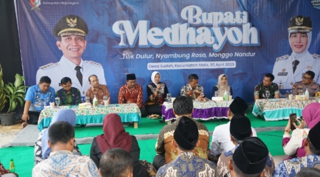 Bojonegoro – Bupati Medhayoh yang menjadi bagian langkah Pemkab Bojonegoro untuk mendekatkan program langsung ke masyarakat, kembali digelar. Kali ini, Bupati Medhayoh digelar di Desa Sudah, Kecamatan Malo, Bojonegoro, Jawa Timur. Pada Kamis (30/04/2026).