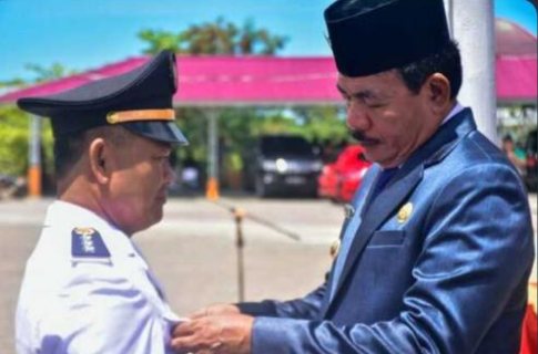 Bupati Nias Barat Khenoki Waruwu Memasang Tanda Jabatan Camat Lolofitu Moi Temanaso Gulo, S.Pd.