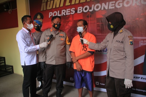 Kapolres Bojonegoro AKBP EG Pandia, SIK SH MH dalam konferensi pees dihalaman mapolres mengatakan bahwa jajaran Satreskrim Polres Bojonegoro berhasil mengamankan pelaku pencabulan anak di bawah umur.