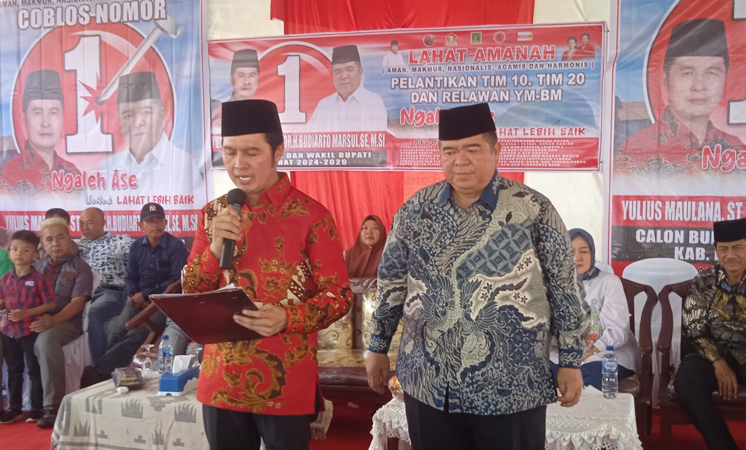 Sebanyak 765 Orang dari Tim 10 dan Tim 20 dan Relawan YM_BM sekira pukul 09.30 Wib telah dilakukan acara Pelantikan dan Pengukuhan yang langsung di Lantik oleh Calon Bupati Lahat Yuli