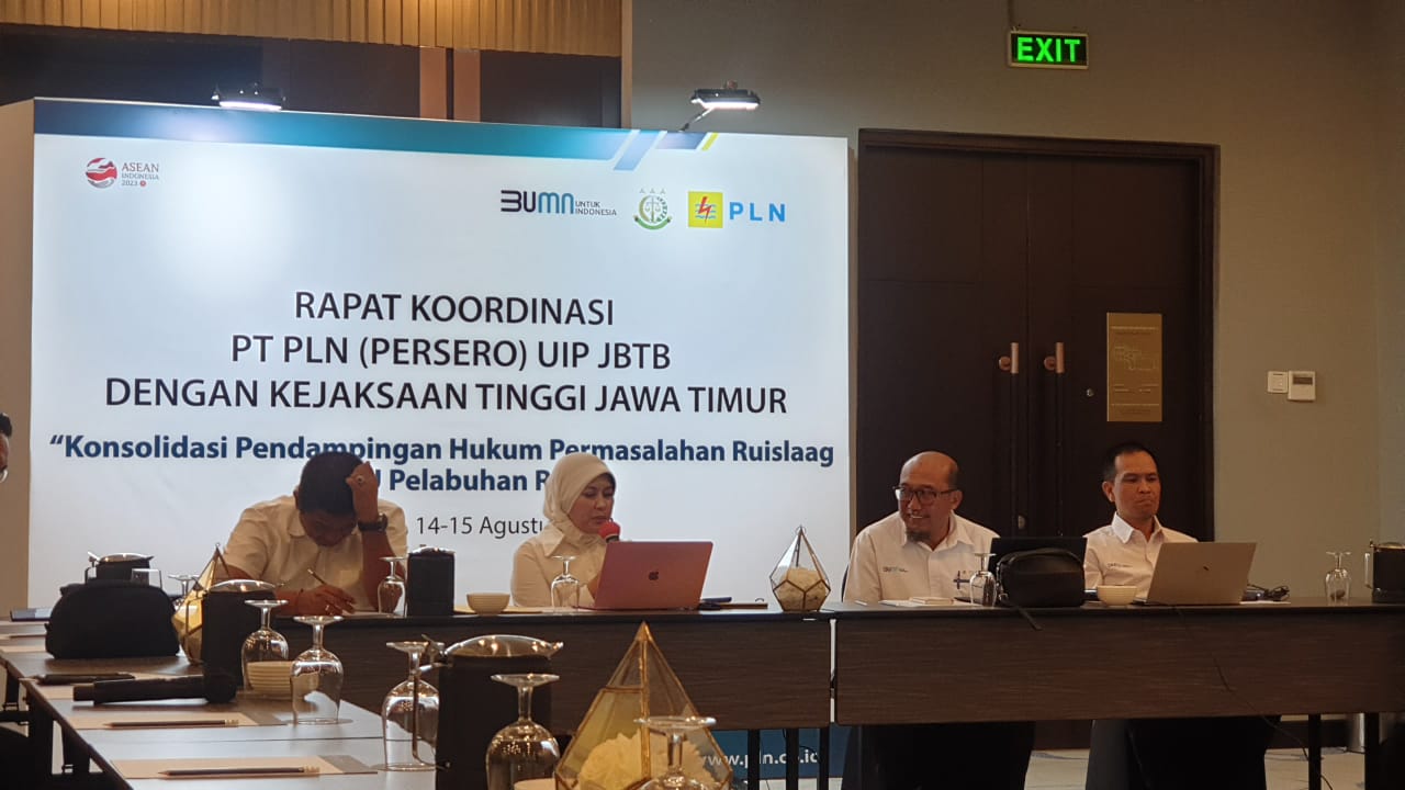 Bandung || Mmcnews – 21 Agustus 2023. PLN sinergikan langkah terbaik untuk penyelamatan aset negara terkait PLTU Pelabuhan Ratu dengan Kejaksaan Tinggi Jawa Timur. Dalam rangka penyamaan visi dan perkuat koordinasi serta penyusunan strategi penyelesaian permasalahan terkait ruislaag serta sertipikasi tanah di PLTU Pelabuhan Ratu, PLN Unit Induk Pembangunan Jawa Bagian Timur dan Bali (PLN UIP JBTB) adakan rapat koordinasi dengan Kejaksaan Tinggi Jawa Timur terkait Konsolidasi Pendampingan Hukum terkait penyelamatan asset PT PLN (Persero) dan Penyelesaian Permasalahan Ruislaag PLTU Pelabuhan Ratu yang berlokasi di Kabupaten Sukabumi, Jawa Barat.(14/08)
