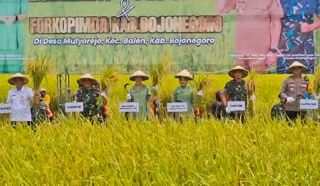 BOJONEGORO, – Bersama Kelompok Tani (Poktan) Sarimulya 1 dan 2, Komandan Korem (Danrem) 082/CPYJ Kolonel Inf Batara Alex Bulo, melakukan panen raya padi Masa Tanam (MT) kedua seluas 230 hektar di Desa Mulyorejo Kecamatan Balen Kabupaten Bojonegoro, Jawa Timur, Rabu (15/1/2025).
