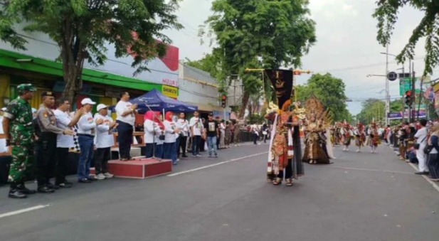 Para peserta, yang berasal dari jenjang SD hingga SMA sederajat, tampil memukau dengan kostum penuh warna dan formasi koreografi yang menawan.