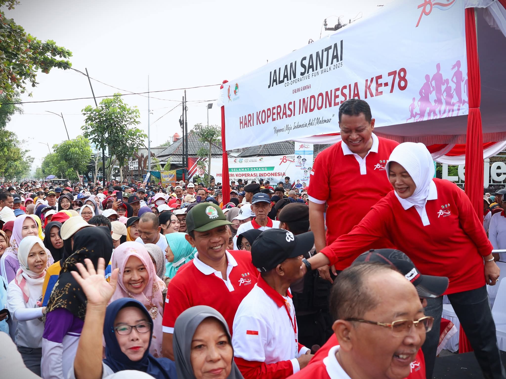 Bojonegoro – Semangat kebersamaan dan kegembiraan menyelimuti Bojonegoro hari ini, saat ribuan orang tumpah ruah mengikuti Jalan Santai. Kegiatan dalam rangka Hari Koperasi ke-78 ini mengusung tema “Koperasi Maju, Indonesia Adil Makmur”.