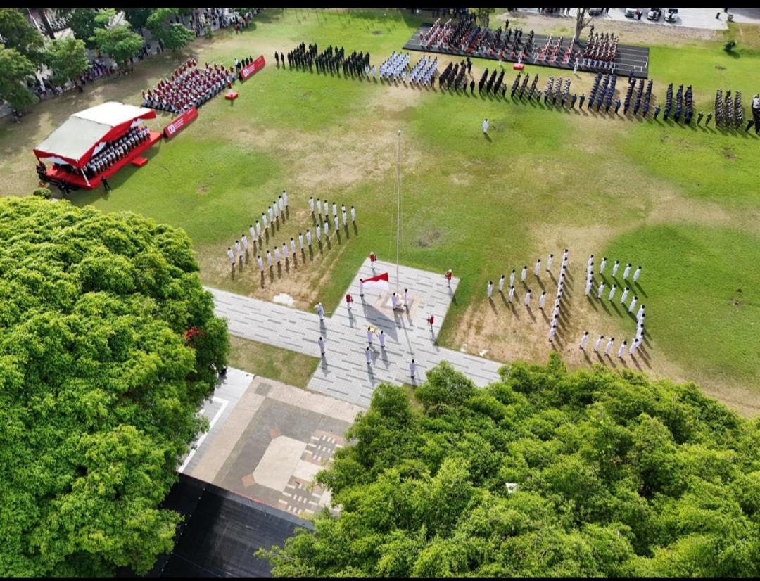 Menariknya, saat pengibaran bendera mereka membentuk formasi angka 17 dan 45 bila dilihat dari udara.
