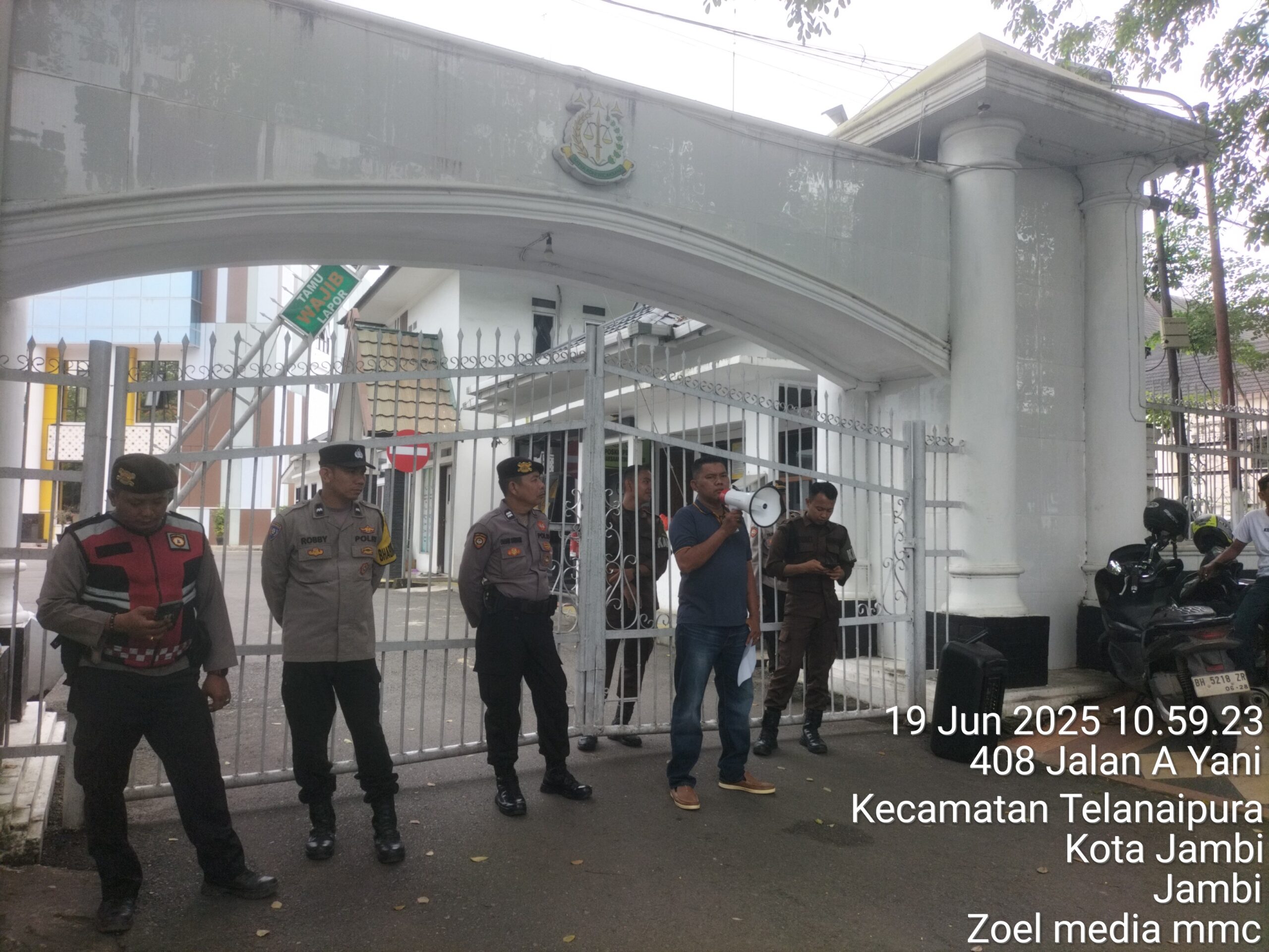 Kota Jambi mmcnews.id Aliansi Kawal Uang Negara (AKUN) turun aksi demo di depan kantor Kejaksaan Tinggi Jambi terkait dugaan Kegiatan Rehabilitasi Pekerjaan Rehab Panel Jalan simpang Nasional SMA 2 Desa Rembang Sel Lentang Kabupaten Muaro Jambi pada kamis 19-06-2025.