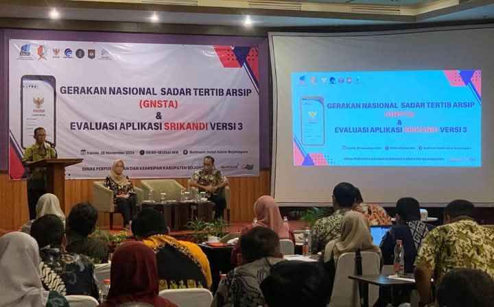 Bojonegoro -Dinas Perpustakaan dan Kearsipan Kabupaten Bojonegoro melakukan Gerakan Nasional Sadar Tertib Arsip (GNSTA), Kamis (28/11/2024) di Aston Bojonegoro City Hotel. Kegiatan ini juga sekaligus evaluasi aplikasi SRIKANDI versi 3 dan penandatanganan komitmen.