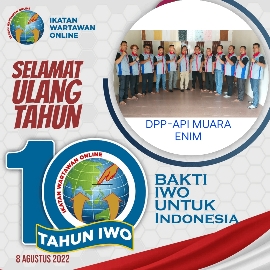 MUARA ENIM – MMCnews.id_ Dewan Pimpinan Pusat Aspirasi Pewarta Independen (DPP API) Muara Enim mengucapkan selamat Ulang Tahun yang ke 10 kepada Ikatan Wartawan Online (IWO) Kabupaten Muara Enim.