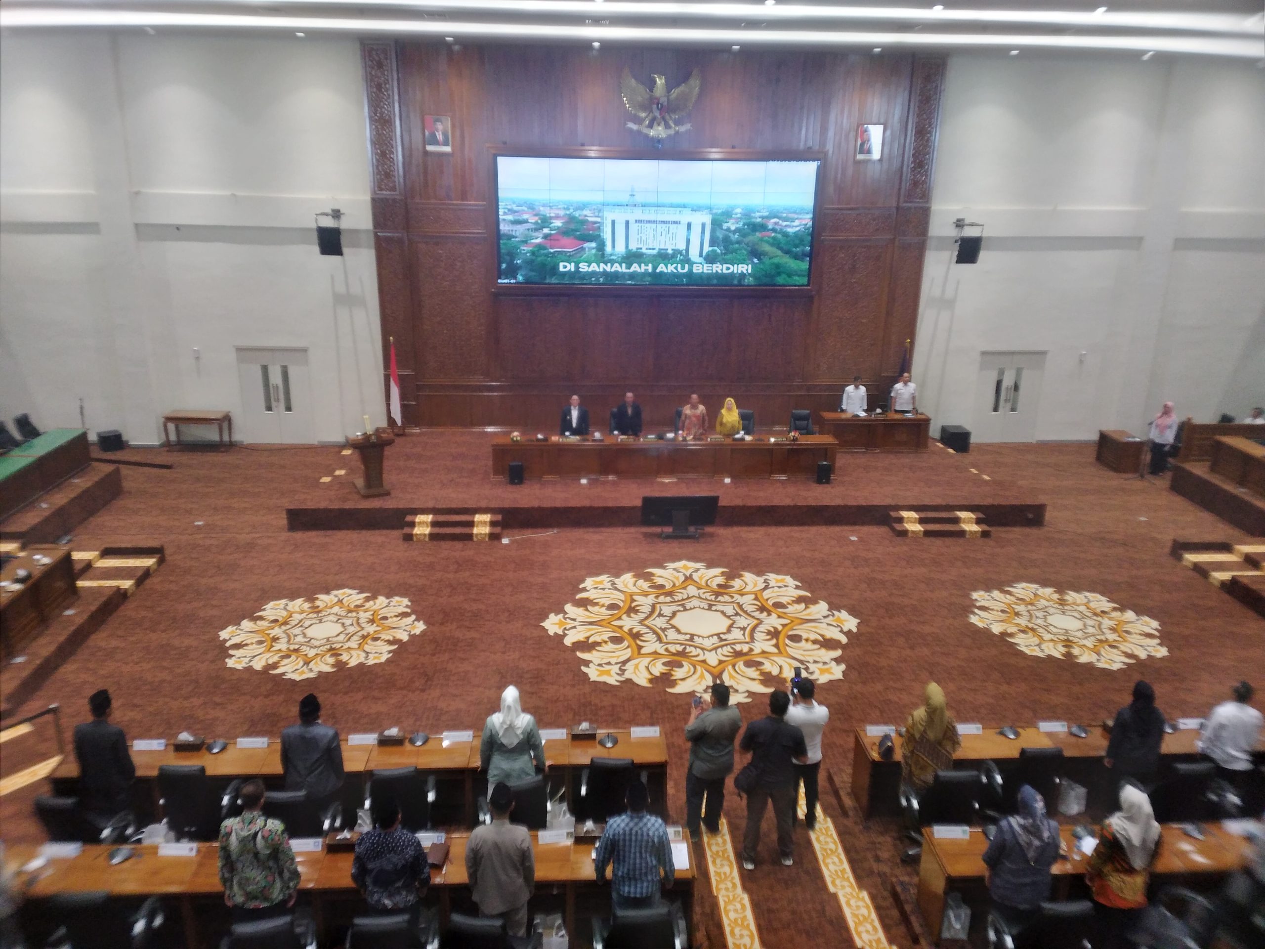 Pantauan media di lokasi sidang nampak para OPD, Camat, dan pj. Sekda Joko Lukito yang baru dilantik serta PJ. Bupati Adriyanto.