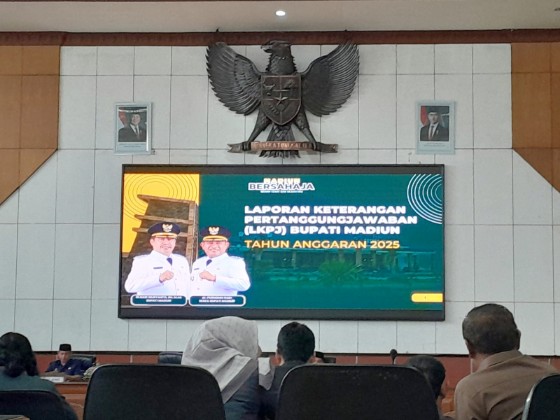 Dalam pemaparannya, Bupati Madiun Hari Wuryanto menyampaikan capaian penyelenggaraan pemerintahan daerah selama satu tahun, mulai dari pengelolaan keuangan, pelaksanaan program dan kegiatan, kebijakan strategis, tindak lanjut rekomendasi DPRD, hingga pelaksanaan tugas pembantuan.