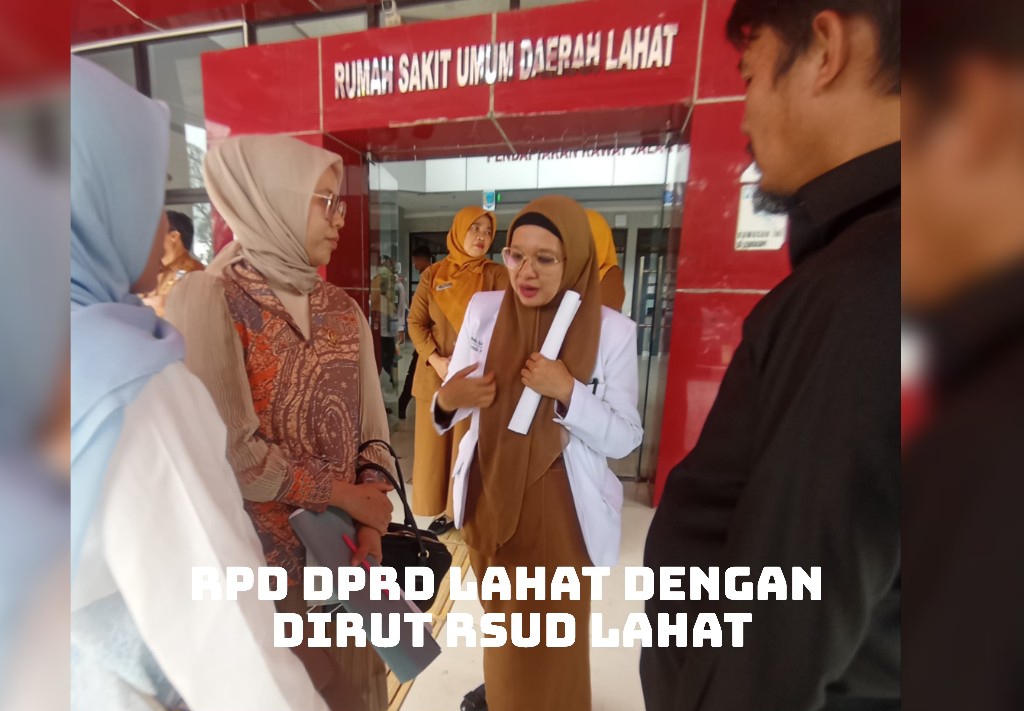 Beberapa Hari lalu Komisi IV DPRD Kabupaten Lahat yang di pimpin langsung Ketua DPRD Lahat melakukan Kunjungan kerja untuk Inspeksi /Sidak guna memastikan kondisi keadaan RSUD kabupaten Lahat sekaligus melaksanakan Rapat Dengar Pendapat (RDP) bersama Plt Direktur RSUD Lahat dr. Hj. Devi Yolandha,Sp.P,FISR.