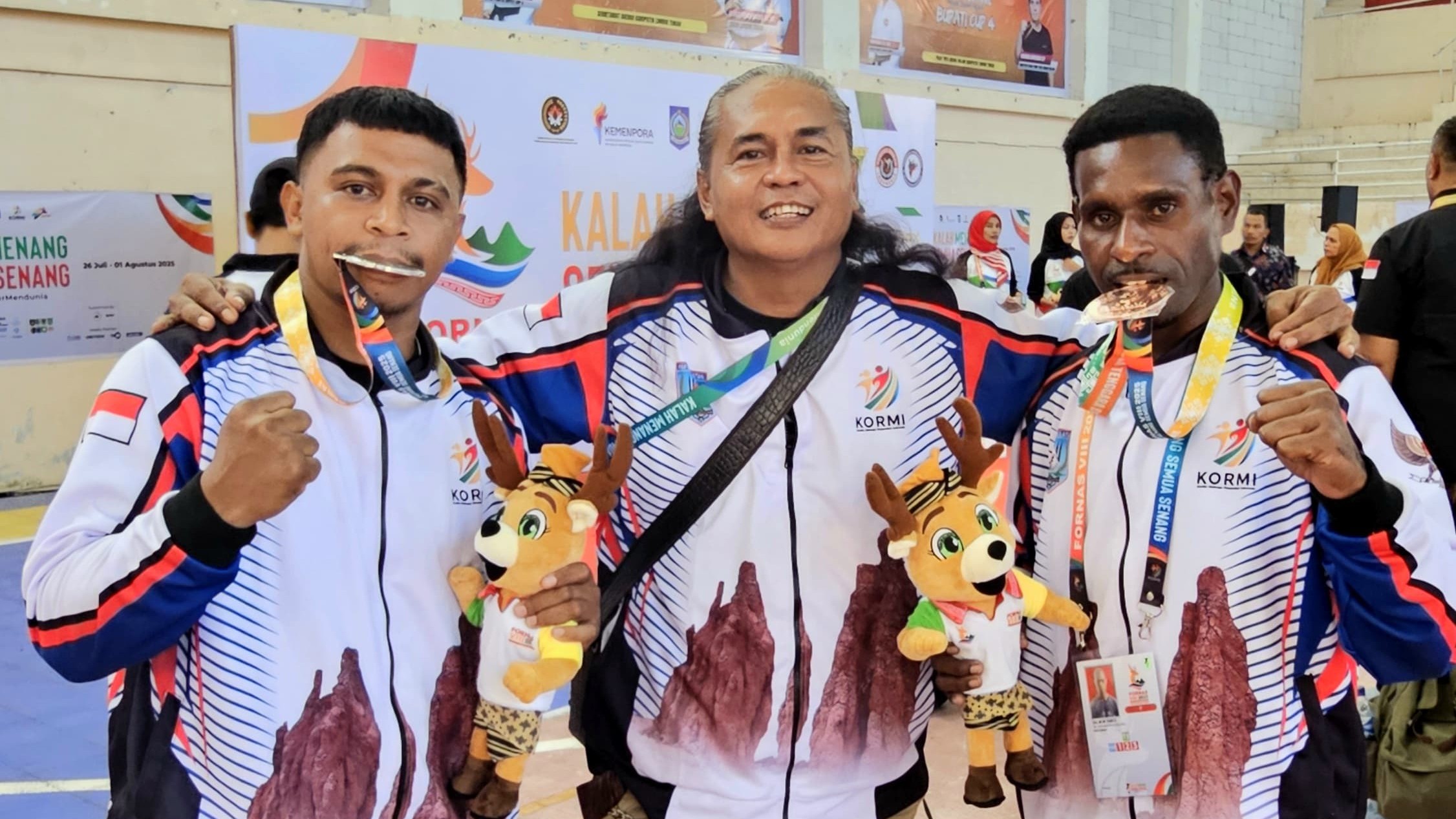 Merauke, Mmcnews – Dua pegiat Tarung Bebas Indonesia Provinsi Papua Selatan berhasil menyumbangkan medali pada ajang Festival Olahraga Masyarakat Nasional (FORNAS) ke-8 di Nusa Tenggara Barat. Petrus Rumatora yang turun di kelas under 74 kg meraih medali perak, sementara Salmon Yames di kelas under 53 kg membawa pulang medali perunggu.