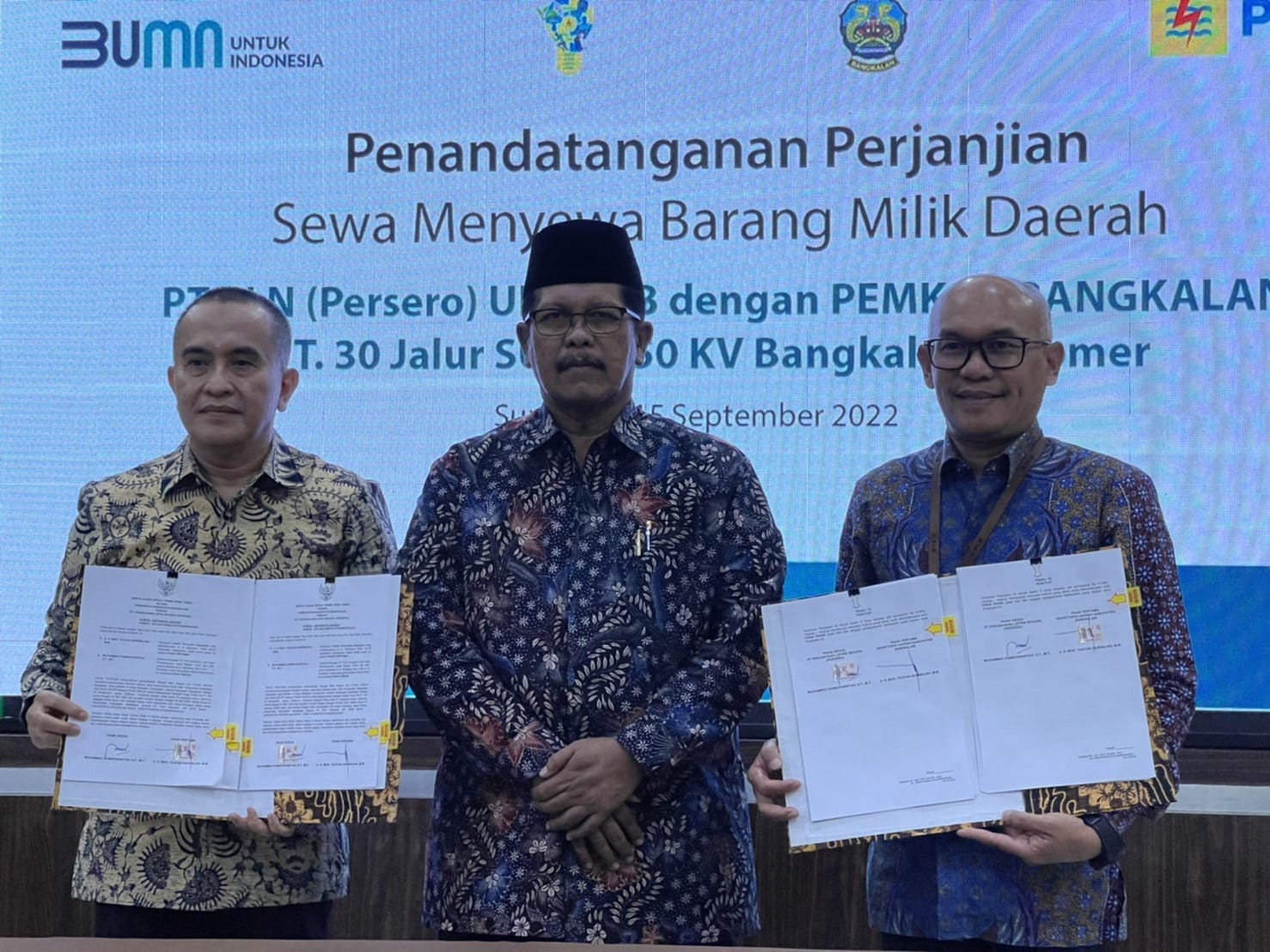 SUTT 150 kV Bangkalan Incomer dengan panjang lintasan 23 kms dengan total 31 tower, direncanakan akan beroperasi pada akhir September 2022. Infrastruktur kelistrikan ini nantinya akan memberi perkuatan daya untuk pasokan listrik di Pulau Madura, di mana Tower no 30 dari jalur kelistrikan ini berada pada tanah milik Pemerintah Kabupaten Bangkalan. Berkaitan dengan hal itu, PT PLN (Persero) bekerja sama dengan Pemerintah Kabupaten Bangkalan dalam hal sewa menyewa Barang Milik Daerah berupa tanah yang dipergunakan dalam pembangunan tapak tower T.30. Kerja sama BUMN dan Pemerintah Kabupaten Bangkalan ini ditandai dengan penandatanganan Perjanjian Sewa Menyewa.(15/09)