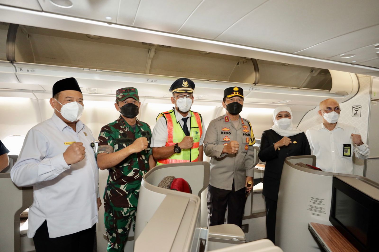 Gubernur Jawa Timur Khofifah Indar Parawansa, Pangdam V Brawijaya Mayjend TNI Nurchahyanto, Kapolda Jatim Irjen Pol Nico Afinta, Danlanudal Juanda, Kakanwil Kemenag Jatim, pejabat utama Kodam V Brawijaya, pejabat utama polda jatim, Kapolresta Sidoarjo, Direktur Teknik Garuda Indonesia serta Koordinator Himpunan Penyelenggara Umrah dan Haji Khusus (Himpuh) Jatim, Bali dan NTB secara resmi melepas jamaah umroh dan sekaligus membuka penerbangan jamaah umroh melalui Bandara Internasional Juanda.