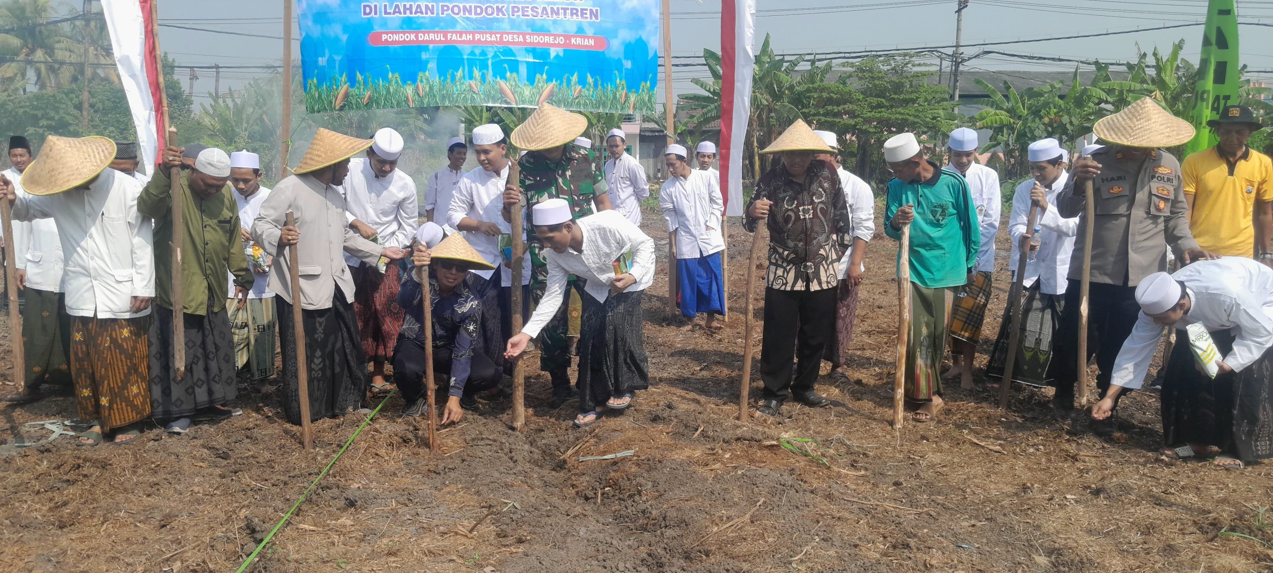 SIDOARJO | MMCNEWS – Dalam rangka mendukung ketahanan pangan nasional, Polsek Krian bersama Forkopimka Krian serta para tokoh agama melakukan penanaman jagung. Kegiatan ini dilaksanakan di lahan Pondok Pesantren Darul Falah, Desa Sidorejo, Krian, pada Kamis (14/8/2025). Hadir dalam kegiatan ini Kapolsek Krian Kompol IGP Atma Giri, Camat Krian, perwakilan Koramil Krian, Kepala Desa Sidorejo, para tokoh agama, serta ratusan santri.