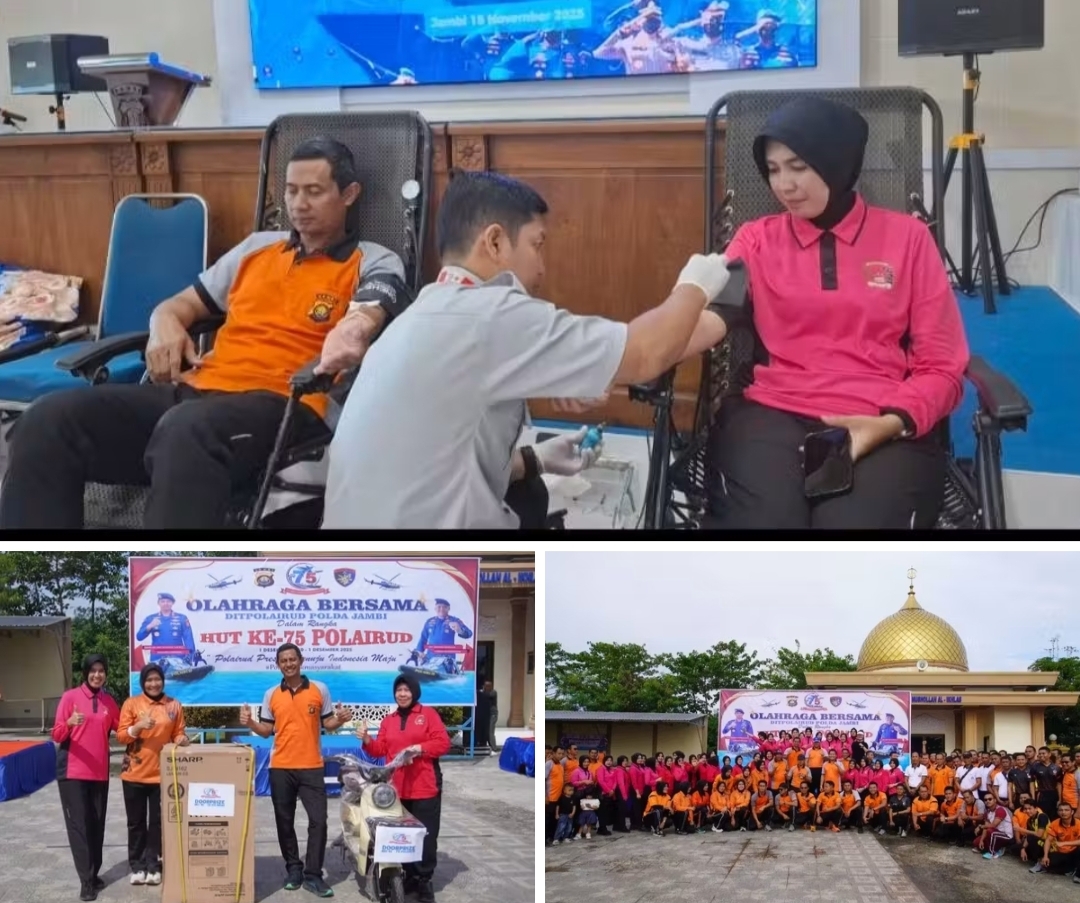 Kota Jambi mmcnews.id Dalam memperingati Hari Ulang Tahun (HUT) Ke-75 Polisi Air dan Udara (Polairud) Polda Jambi, hari ini Selasa 18-11-2025 adakan kegiatan Bakti Sosial (Baksos) Donor Darah.
