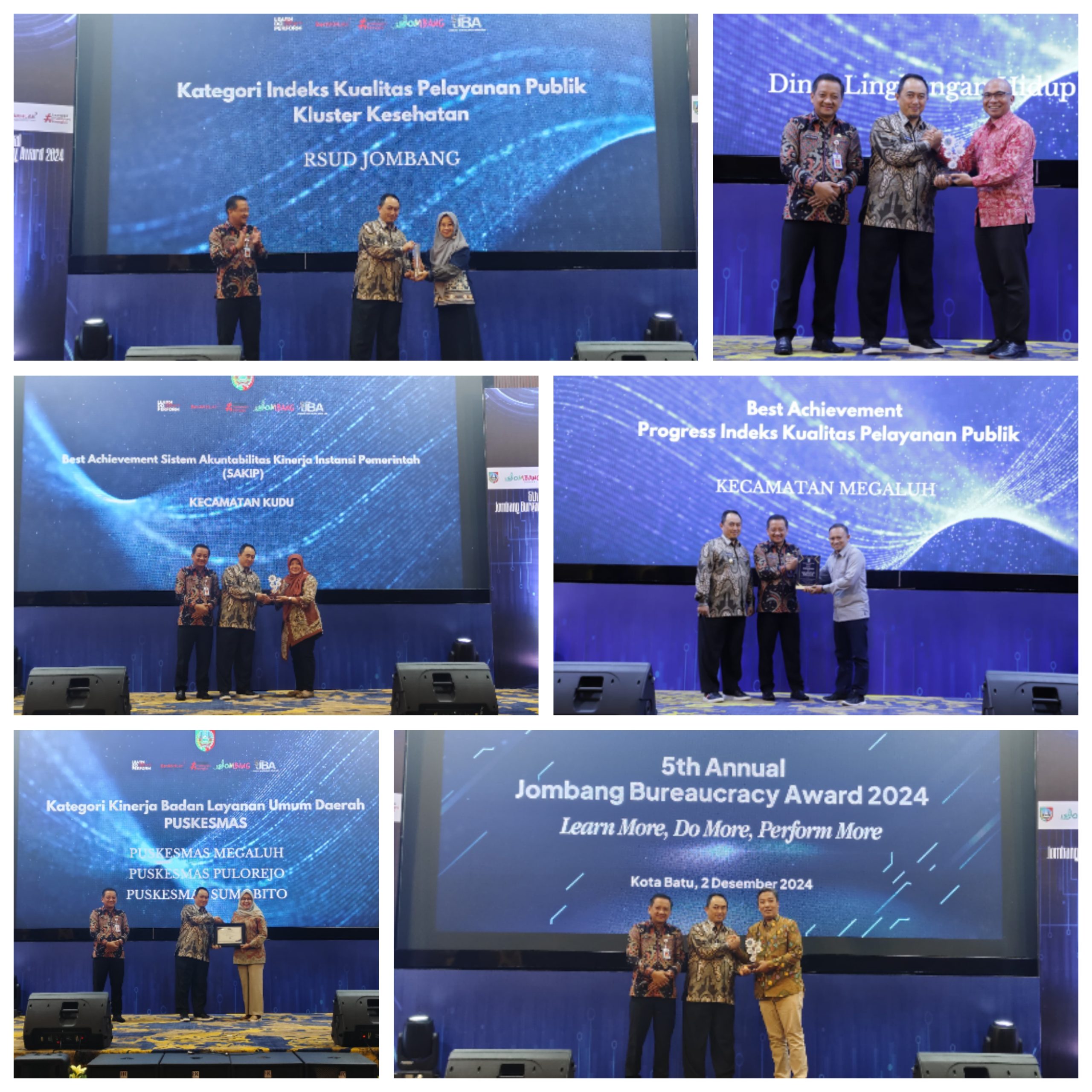 Penghargaan kategori kinerja badan layanan umum daerah, lebih khusus penghargaan kinerja BLUD RSUD diraih oleh peringkat 1 RSUD Jombang dan peringkat 2 RSUD Ploso. Penghargaan kinerja BLUD Puskesmas peringkat 1 diraih oleh Puskesmas Megaluh, peringkat 2 Puskesmas Pulorejo, peringkat 3 Puskesmas Sumobito.