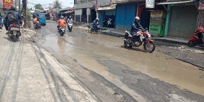 “Iya benar mas sering disini pengendara motor jatuh, yang saya miris lagi pernah lihat ibu-ibu bawa anaknya dua melintas antar sekolah terjatuh sampe kedua anaknya terpental dan basah kuyup karena kubangan air yang kotor.” terang Suprin. Minggu (13/06/2021)