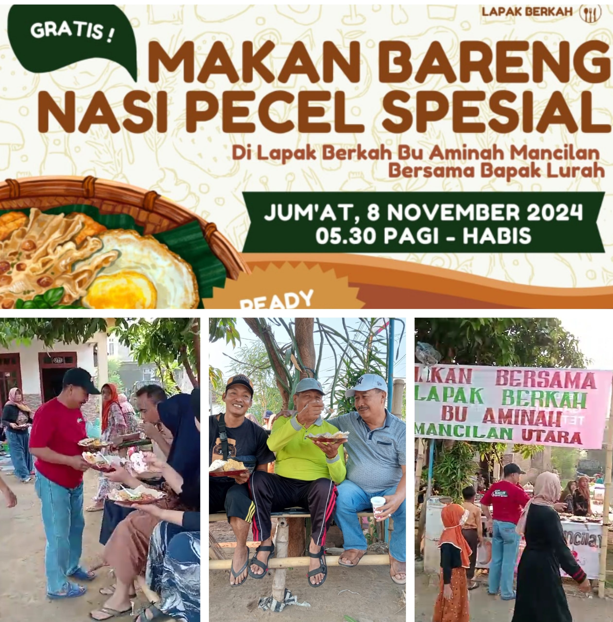 MMCNEWS.ID | Kepala Desa Mancilan, Kecamatan Mojoagung, Kabupaten Jombang menggelar kegiatan Jumat Berkah dengan makan bareng nasi pecel gratis dengan masyarakat, Jum’at (8/11/2024) pagi.