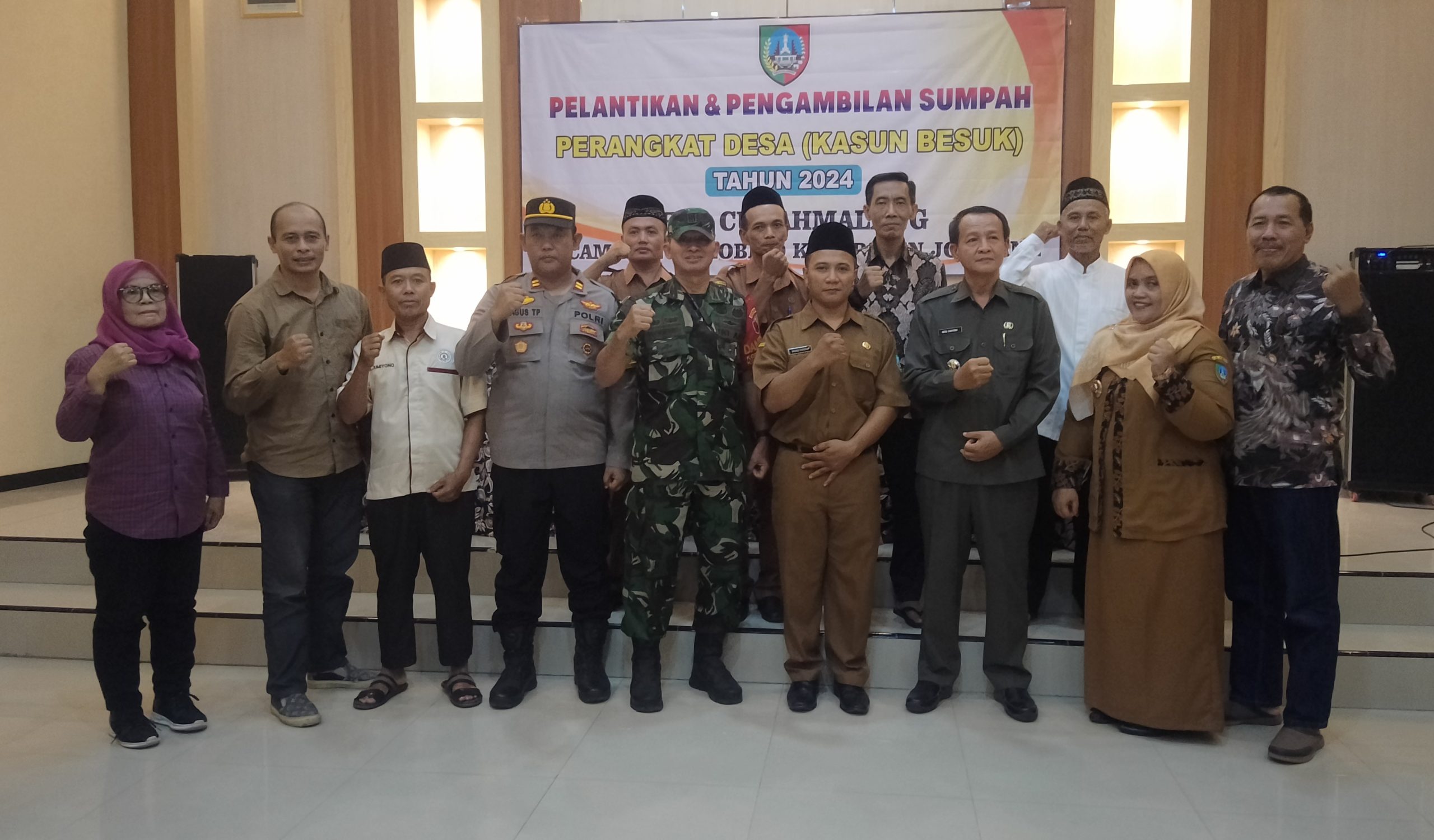 Dalam prosesi acara pelantikan dan pengambilan sumpah jabatan pada malam ini di hadiri oleh Camat Heru Cahyono, bersama sekcam Haris Handayani dan Muh Rizal, Kapolsek Iptu Bagus Tejo Purnomo, Danramil Kapten Inf Suwarno, Panitia Pemilihan Perangkat Desa, Ketua BPD, Tokoh Masyarakat, RT, RW, dan seluruh perangkat desa, KUA, Tokoh Agama dan keluarga perangkat yang dilantik. Selasa (12/11/2024).