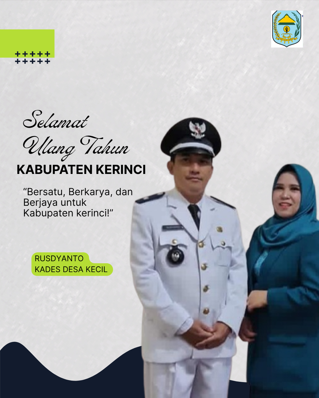 KERINCI – Dalam momentum peringatan Hari Ulang Tahun (HUT) ke-67 Kabupaten Kerinci tahun 2025, Kepala Desa,Desa Kecil, Kecamatan Air Hangat Barat, Rusdyanto, menyampaikan ucapan selamat dan harapan terbaik bagi kemajuan daerah yang dikenal dengan keindahan alam dan kekayaan budayanya itu.