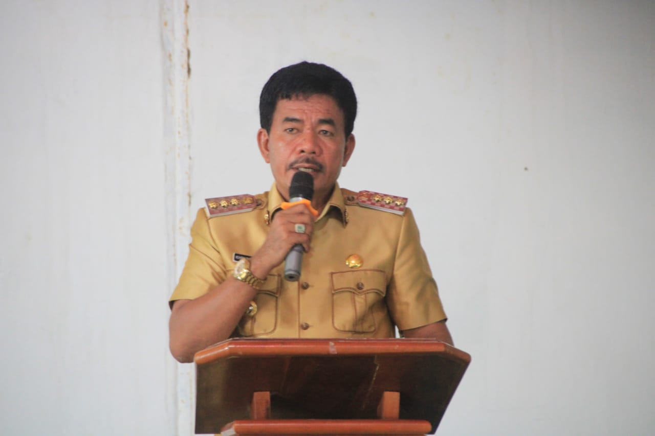 Bupati Nias Barat Khenoki Waruwu pada pelaksanaan rapat koordinasi dan sosialisasi asesmen nasional berbasis komputer (ANBK) yang dilaksanakan di Tokosa Hall, Senin (1/11/2021).