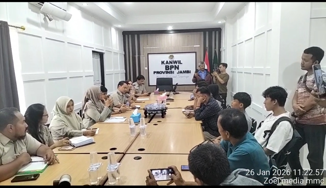 Jambi mmcnews.id. Kantor Wilayah Agraria Tata Ruang dan Badan Pertanahan Nasional (ATR /BPN) Jambi di demo sekelompok mahasiswa dan warga. pada senin 26-01-2026.