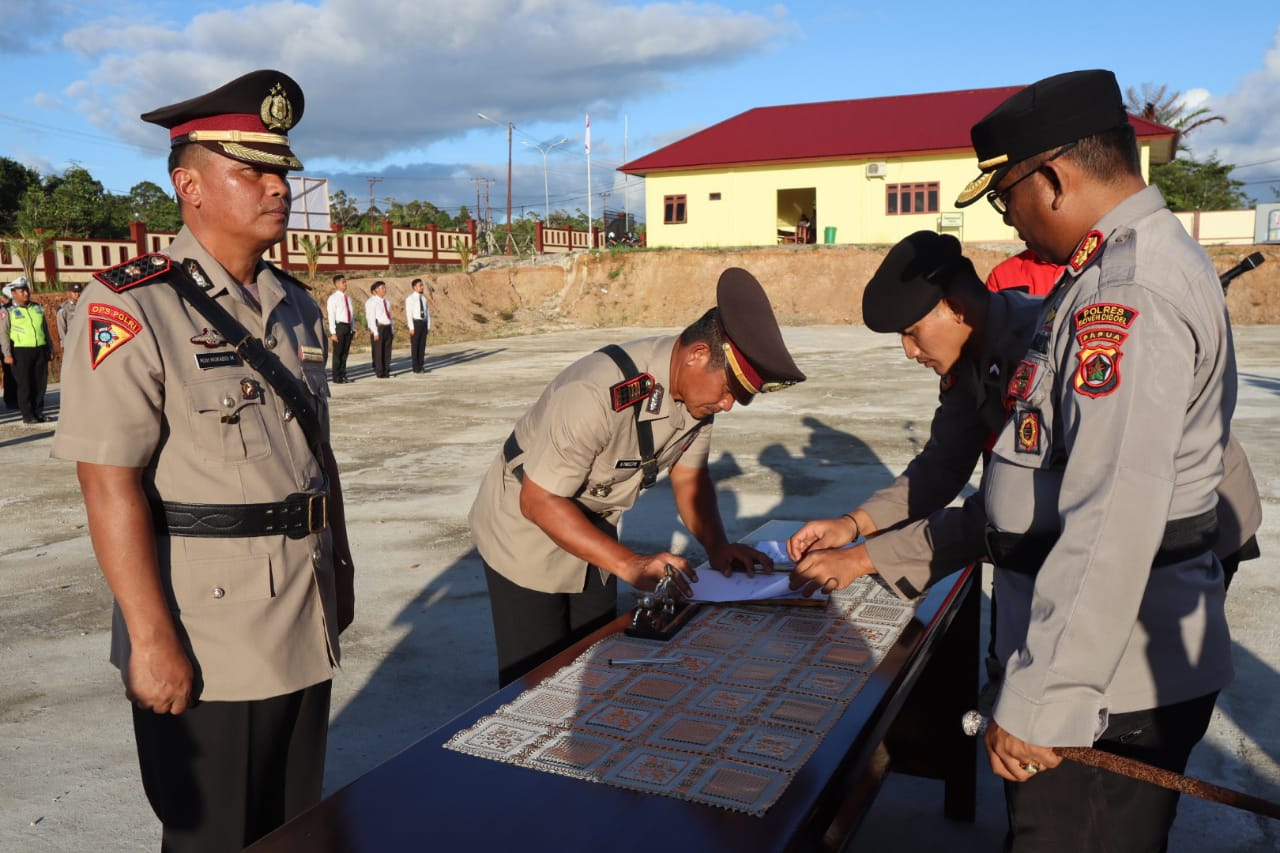 Serah Terima Wakapolres dari Kompol Muh Mukabsi, S.Sos, M.M kepada AKP Handoyo Prasetyo pelaksanaan Upacara diikuti oleh Para PJU, Kapolsek Jajaran, Personil Polres dan Bhayangkari.