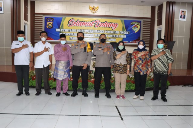 MUARO JAMBI | MMCNEWS — Tim Pusat Penelitian dan Pengembangan (Puslitbang) Polri melaksanakan Penelitian tentang “Tingkat Kepercayaan Masyarakat Terhadap Kinerja Polri” di wilayah Muaro Jambi dan jajarannya, Selasa (30 /03/2022).