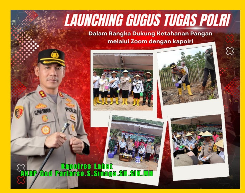 Selain kegiatan penanaman, Polres Lahat juga mengikuti *launching* program ketahanan pangan nasional secara virtual melalui *zoom meeting* bersama Kapolri, yang memimpin kegiatan Polda Jawa Timur, dalam arahannya, Kapolri menegaskan pentingnya kolaborasi lintas sektor untuk menjawab tantangan ketahanan pangan di tengah situasi global yang dinamis.