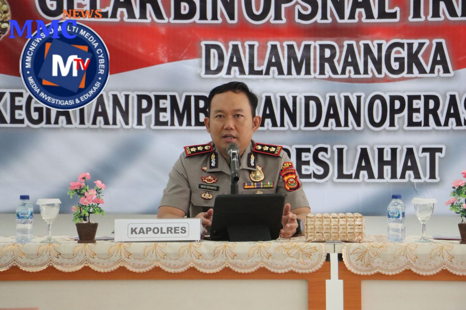 Kapolres Lahat AKBP Novi Edyanto SIK.MIK memimpin langsung pelaksanaan Gelar Bina Operasional (Bin Ops) Triwulan I tahun 2026, sebagai bagian dari kegiatan analisis dan evaluasi (Anev) pembinaan dan operasional. Kegiatan ini dilaksanakan sebagai bentuk komitmen dalam meningkatkan kinerja serta profesionalitas personel dalam menjalankan tugas kepolisian di wilayah hukum Polres Lahat. Kegiatan dihadiri dan diikuti Waka Polres Lahat, Kompol Liswan Nurhapis SH, seluruh pejabat utama, para kapolsek jajaran, serta perwira staf turut hadir dalam kegiatan tersebut.
