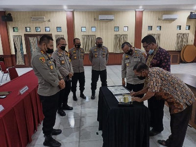 MUARO JAMBI | MMCNEWS — Kapolres Muaro Jambi AKBP Yuyan Priatmaja S.I.K,MH Ikuti kegiatan Penandatanganan Fakta Integritas dan Pengambilan Sumpah Seleksi Penerimaan Terpadu Anggota Polri Taruna/i Akpol Dan Bintara Polri TA. 2022 Panda Polda Jambi di Mapolres Muaro Jambi,Kamis (14/04/22).