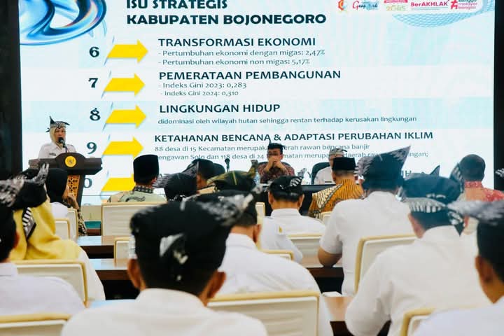 Bojonegoro||mmcnews.id – Pemerintah Kabupaten Bojonegoro menyelenggarakan kick-off Rencana Pembangunan Jangka Menengah Daerah (RPJMD) 2025-2029, Rabu (26/02/2025). Kegiatan dihadiri Menteri Koordinator Bidang Pembangunan Manusia dan Kebudayaan Republik Indonesia Pratikno, dan Wakil Bupati Bojonegoro Nurul Azizah di ruang Angling Dharma, gedung Pemkab Bojonegoro.