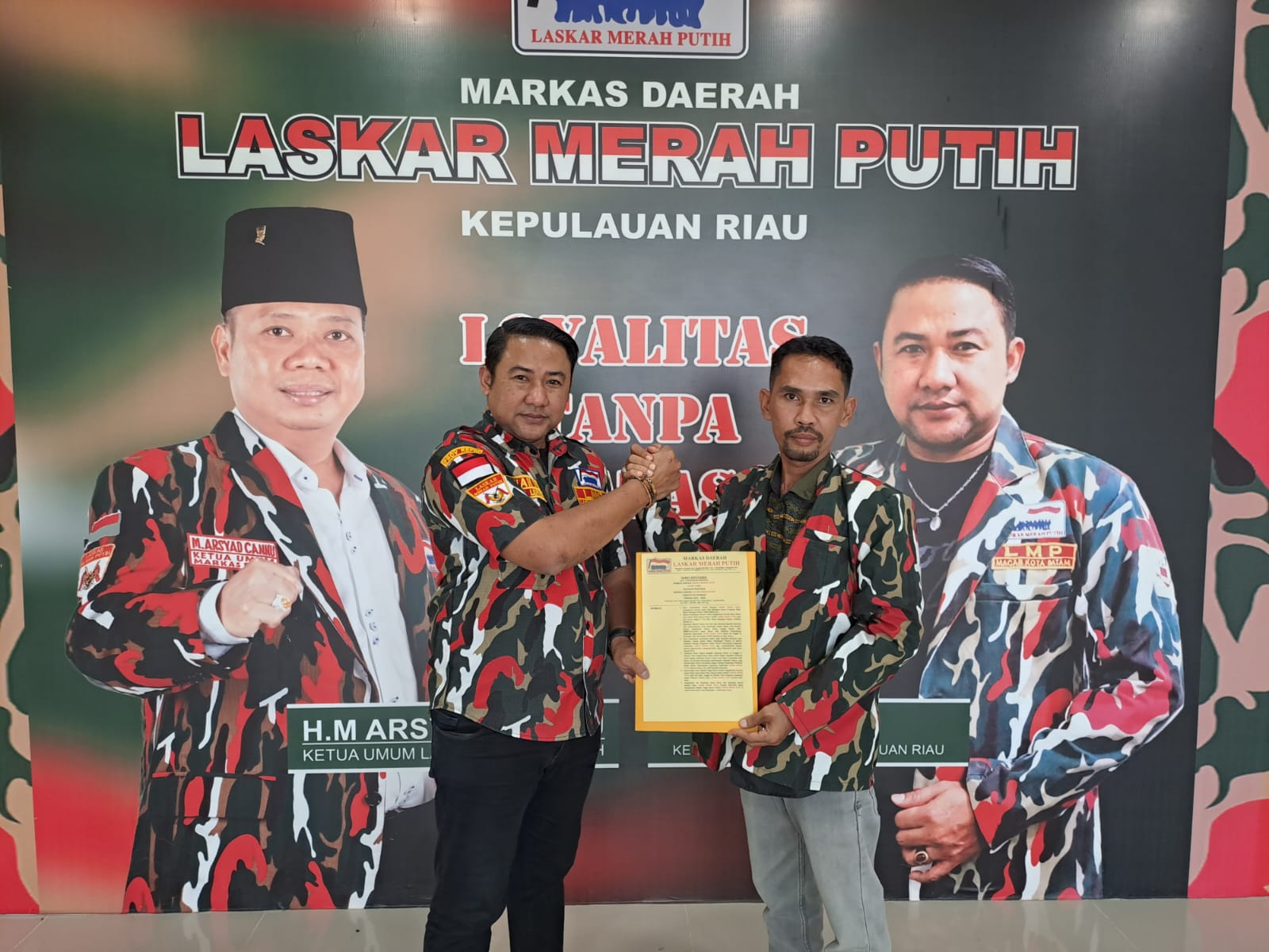 MMC News Karimun – Ketua Markas Daerah (Mada) Laskar Merah Putih (LMP) Kepri Iwan Kei resmi menyerahkan Surat Keputusan (SK) Pengangkatan Ketua dan Kepengurusan Markas Cabang (Macab) LMP Kabupaten Karimun pada Kamis (13/7/2023) di Sekretariat MADA LMP Kepri, Komplek Ruko Anggrek Mas Blok C No. 11 Kota Batam.