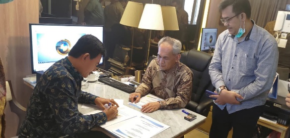 Jakarta- | MMCNEWS -Bupati Nias Barat Khenoki Waruwu menandatangani Naskah Perjanjian hibah daerah Antara Lembaga Pengelola Proyek Badan Kongres Internasional Forum Budaya dan Warisan Dunia (LPP-BIFBWD) dengan Pemerintah Kabupaten Nias Barat, berlangsung di Kantor Pusat LPP-BIFBWD, Menteng–Jakarta Pusat, Kamis (20/1/22)