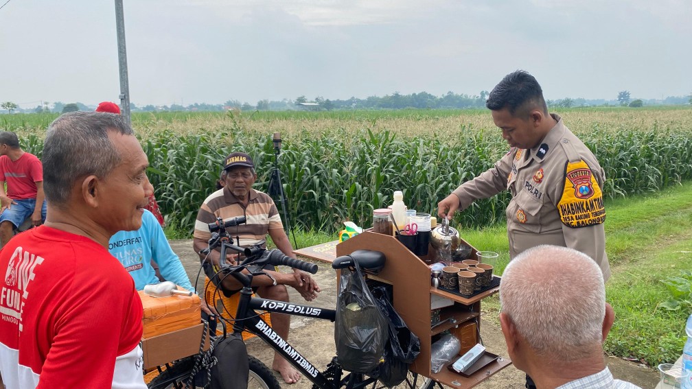 Di lokasi, Aipda Murtadoh tampak berbaur langsung dengan para petani dan warga sambil menikmati kopi pagi, sembari berdiskusi terkait situasi kamtibmas di lingkungan desa.