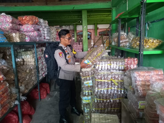 Kanit Binmas Polsek Krembung Aiptu Adin bersama Bhabinkamtibmas Desa Rejeni, Krembung, Selasa (1/10/2024), mendatangi sentra UMKM aneka keripik yakni keripik singkong, ketela, marning dan kerupuk milik H. Samsi di Desa Rejeni.