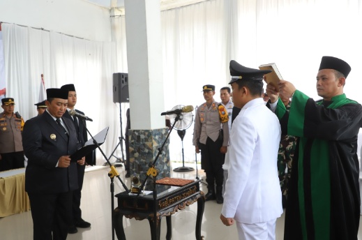 MMCNEWS.ID | Pj Bupati Jombang Dr. Drs. Teguh Narutomo M.M., melantik Iman Saputro, Kepala Desa Antar Waktu (KDAW) Desa Barongsawahan Kecamatan Bandarkedungmulyo di Balai Desa Barongsawahan pada Selasa (26/11/2024) siang.