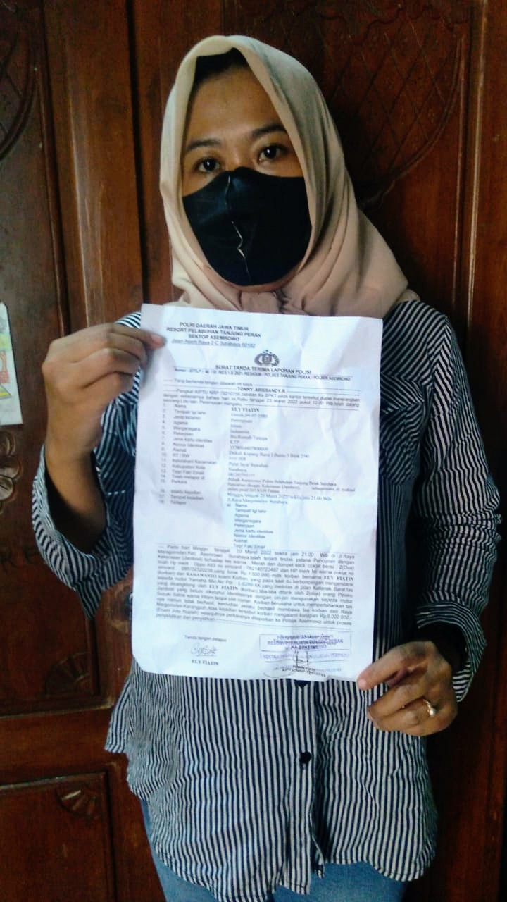 Surabaya, MMCNEWS.ID – (23/3/2022) Nasib apes yg Dialami saudara dari wartawan Pokja Pengadilan Negeri Surabaya Arif Tiasa saat perjalanan pulang dari gresik menuju Surabaya bersama suami serta kedua anaknya si Kembar Riska Risma bergoncengan di jambret di jalan Margomulyo Minggu 20 Maret 2022 sekira pukul 21.00 Wib dan ibu muda bernama Ely Fiatin (42) Bersama suaminya Rahmawanto (43) mendatangi SPKT Polsek Asemrowo Surabaya, Rabu (23/3/2022).