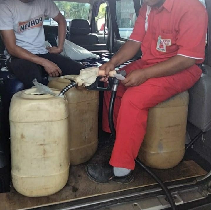 Seperti yang terjadi di Tuban, tepatnya SPBU 53.623.29 Bektiharjo Semanding Tuban sebuah mobil minibus dengan puluhan jirigen plastik didalamnya dengan santainya diisi BBM jenis pertalite oleh petugas SPBU. Dalam box operator pengisian tertera 678,71 liter dengan harga satuan 7650. Selasa 02/11/2021.